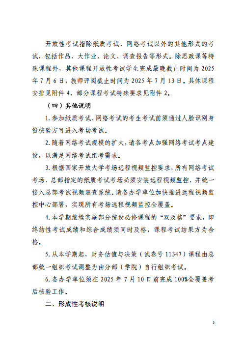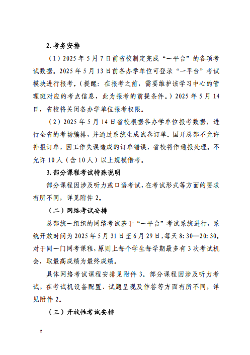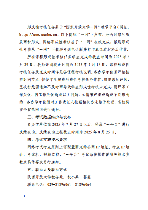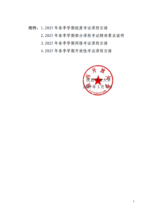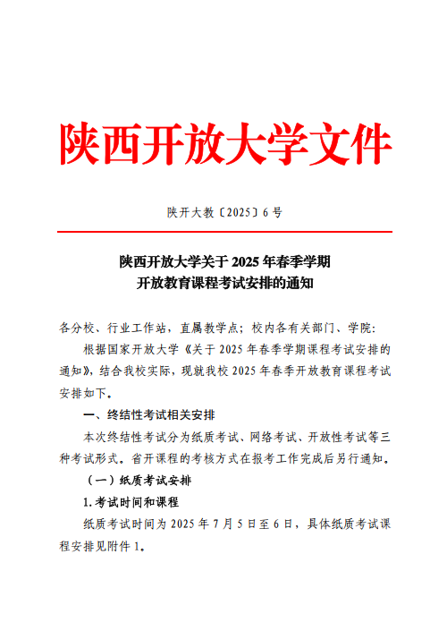 陕西开放大学关于2025年春季学期开放教育课程考试安排的通知